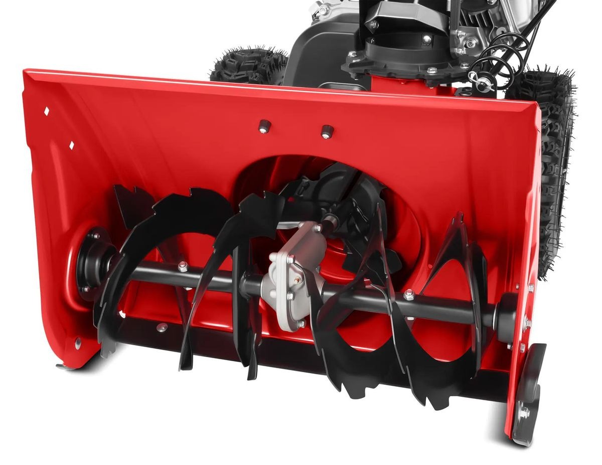 Ширина захвата снега – 56 см, высота захвата снега – 43 см. Благодаря поворотному желобу, Вы можете регулировать поворот направления выброса снега до 190 градусов.