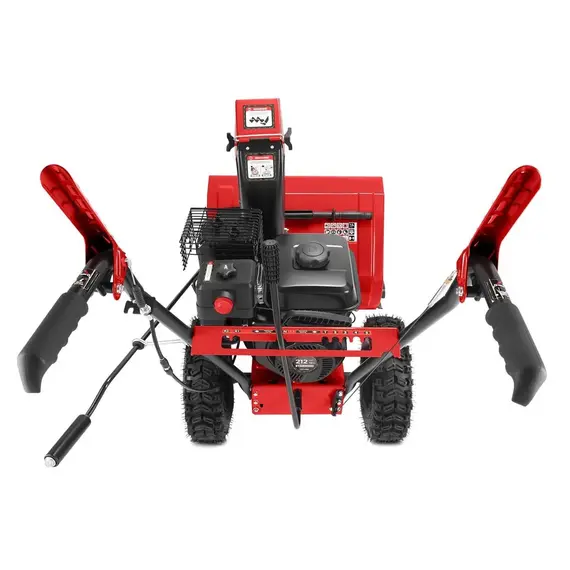 Снегоуборщик оснащен надежным 4-тактным бензиновым двигателем мощностью 7 л.с., что обеспечивает выброс снега на расстояние до 15 м. В конструкции двигателя предусмотрен праймер для быстрого и легкого запуска. Тип стартера – ручной.