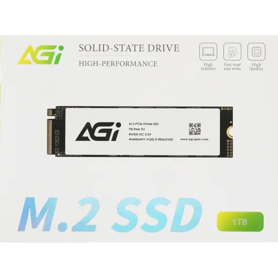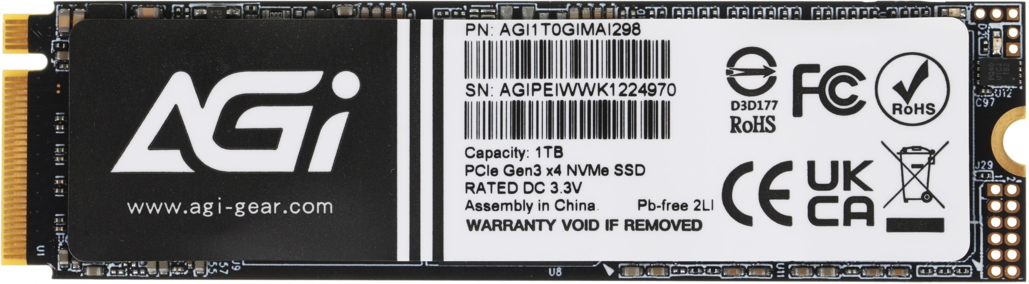 SSD накопитель AGI 1 Тб, внутренний, M.2, 2280, PCI-E x4, NVMe, 3D NAND, AI298 (AGI1T0GIMAI298)
