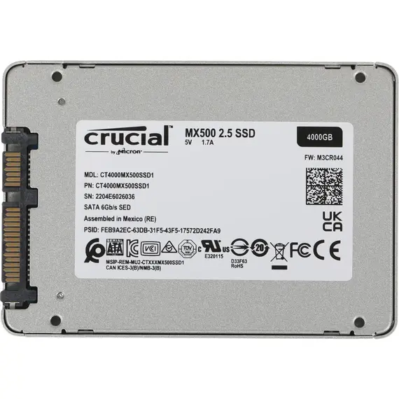 SSD накопитель CRUCIAL 4 Тб, 2.5", MX500 внутренний, SATA-III, TLC (CT4000MX500SSD1)