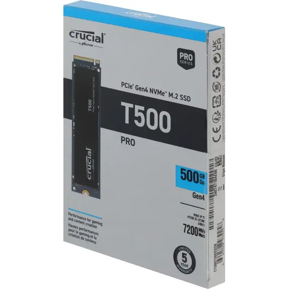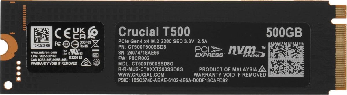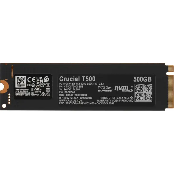 Выбирая CRUCIAL T500 500 Гб, вы инвестируете в скорость нового поколения, надежность и эффективность от проверенного бренда!