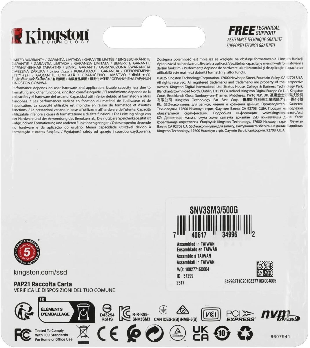 SSD накопитель KINGSTON 500 Гб, M.2, 2230, NV3 внутренний, PCI-E 4.0 x4, NVMe, TLC (SNV3SM3/500G)