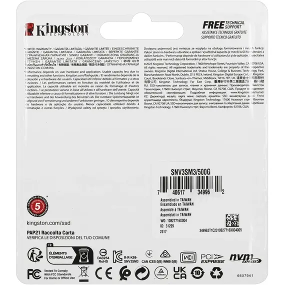 Выбирая KINGSTON NV3 500 Гб, вы получаете ультракомпактное, быстрое и надежное решение для любых ваших задач!
