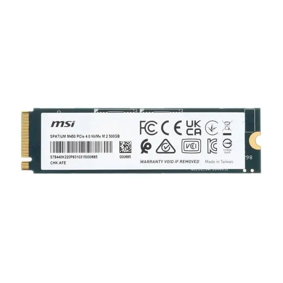 SSD накопитель MSI 500 Гб, внутренний, M.2, 2280, PCI-E 4.0 x4, NVMe, SPATIUM M450 (S78-440K220-P83)