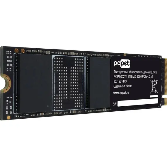 SSD накопитель PC PET 2 Тб, M.2, 2280, OEM внутренний, PCI-E 4.0 x4, NVMe, 3D NAND (PCPS002T4)