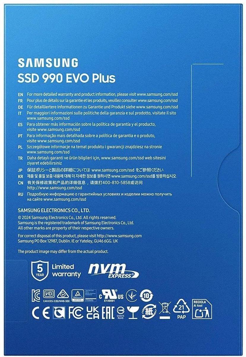 Выбирая SAMSUNG 990 EVO PLUS 1 ТБ, вы инвестируете в беспрецедентную скорость, премиальную надежность и производительность от проверенного бренда!