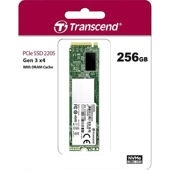 SSD накопитель TRANSCEND 256 Гб, M.2, 2280, 220S внутренний, PCI-E 3.0 x4, TLC (TS256GMTE220S)