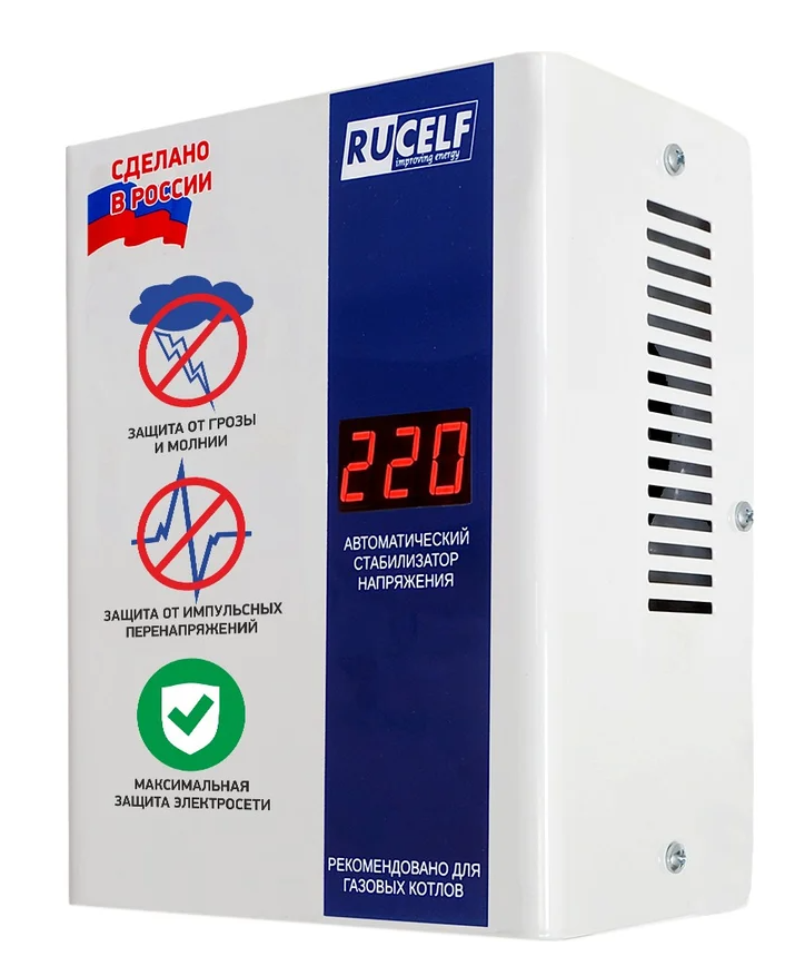 Стабилизатор напряжения RUCELF 1.2кВА однофазный белый (КОТЕЛ-1200)