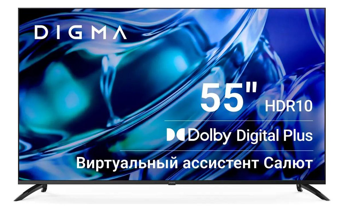 Телевизор DIGMA LED 55" Салют ТВ Frameless Metal черный 4K Ultra HD 60Hz DVB-T DVB-T2 DVB-C DVB-S DVB-S2 USB WiFi Smart TV (DM-LED55UBB40)