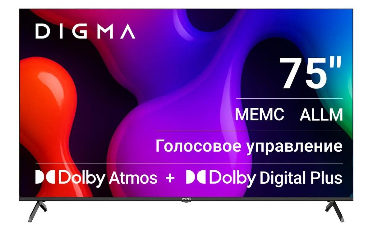Телевизор DIGMA QLED 75" Google TV Frameless Metal черный/черный 4K Ultra HD 60Hz MEMC DVB-T DVB-T2 DVB-C DVB-S DVB-S2 USB WiFi Smart TV (DM-LED75UQB31)