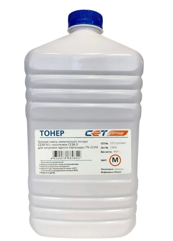 Тонер CET CE38-M пурпурный (Magenta) в бутылке 467 гр. (артикул CET111070467) – это высококачественное и экономичное решение, разработанное специально для заправки картриджей цветных многофункциональных устройств KONICA MINOLTA Bizhub C227 и C287. Этот совместимый тонер обеспечивает отличное качество печати и существенную экономию средств по сравнению с использованием оригинальных расходных материалов.