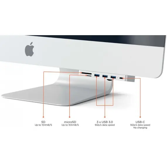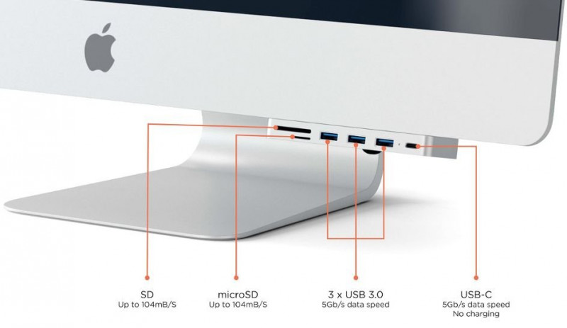 USB хаб SATECHI Aluminum Type-C Clamp Hub Pro для new 2017 iMac и iMac Pro. Интерфейс USB-C. 3 разъема USB 3.0, 1 разъем USB-C, слоты для карты памяти SD, Micro SD. Цвет серебряный. Aluminum Type-C Clamp Hub Pro for new 2017 iMac и iMac Pro (ST-TCIMHS)