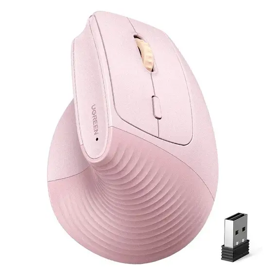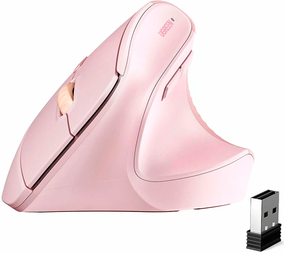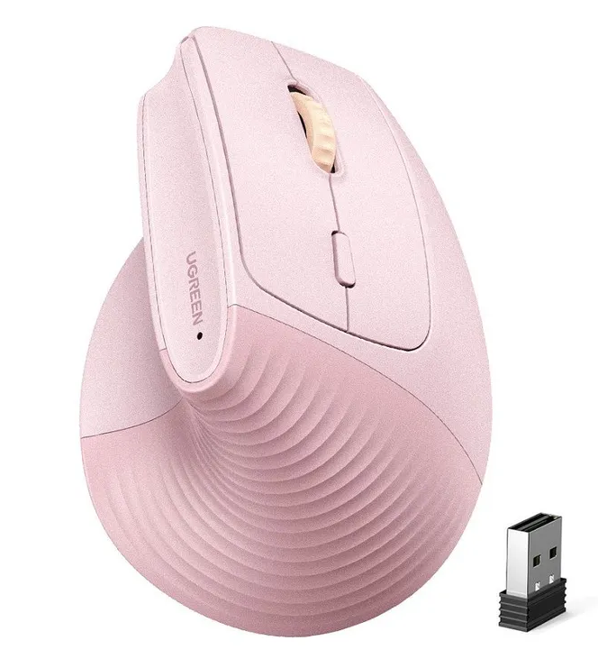Представляем Вертикальную мышь UGREEN Беспроводную M571 (55917) Wireless Vertical Mouse 2.4 GHz в элегантном розовом цвете — идеальное решение для тех, кто заботится о своем здоровье и комфорте во время длительной работы за компьютером. Эта мышь не просто красивый аксессуар, она обеспечивает естественное положение руки, снижая нагрузку на запястье и предотвращая развитие туннельного синдрома.