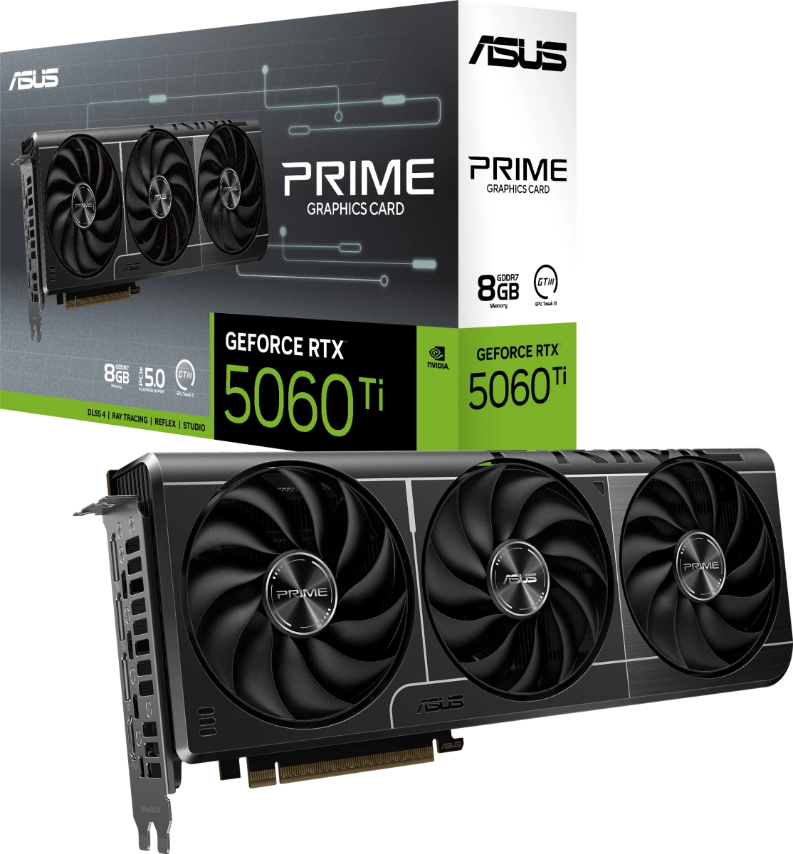 Видеокарта ASUS GeForce RTX 5060 Ti, 8 Гб, Prime GDDR7, 128 бит, 3FAN (PRIME-RTX5060TI-8G)