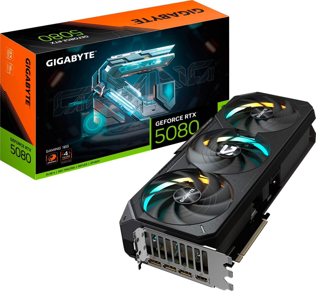 Видеокарта GIGABYTE GeForce RTX 5080, 16 Гб, GAMING 16G GDDR7, 256 бит, 3FAN (GV-N5080GAMING-16GD)