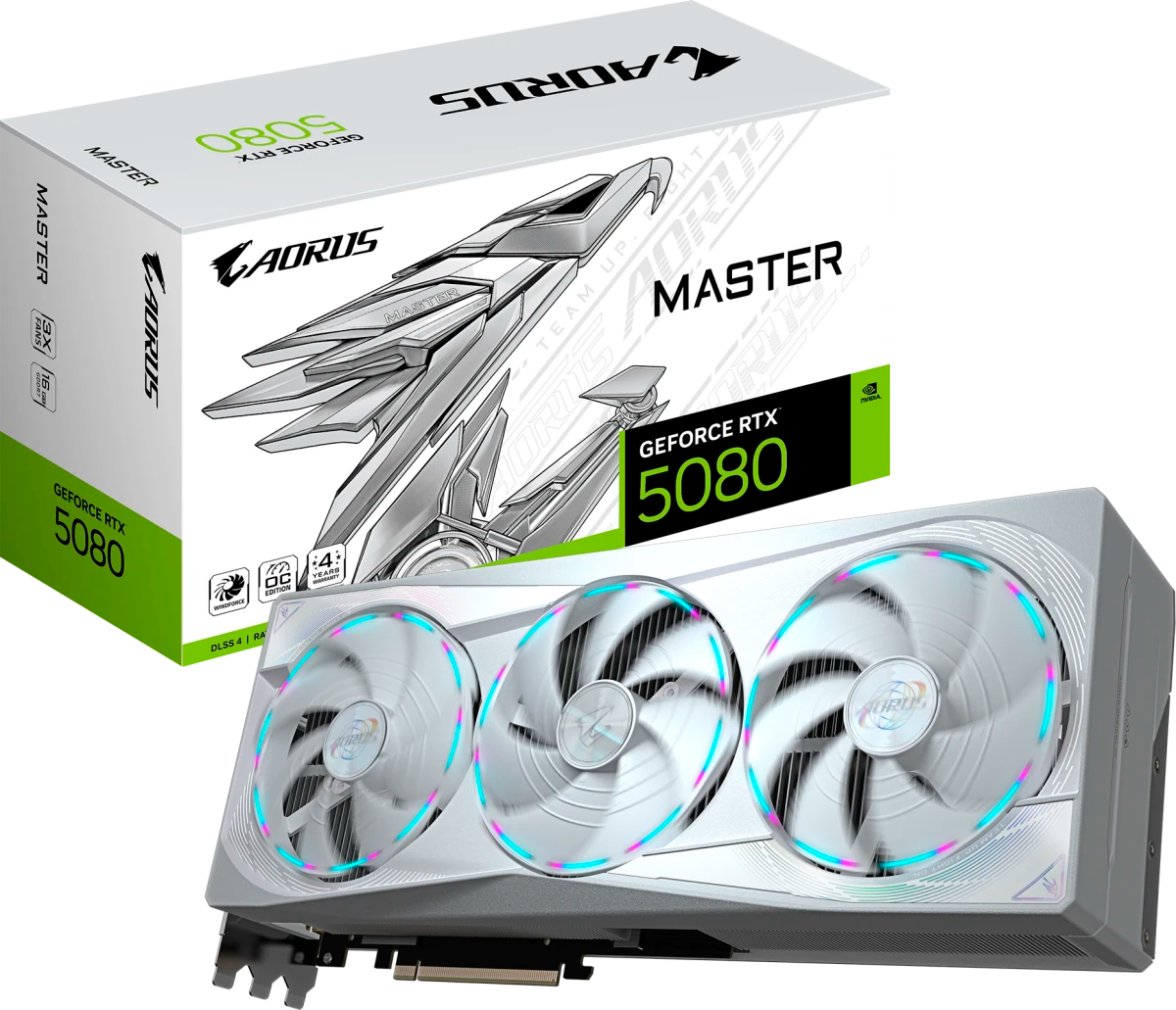 Видеокарта GIGABYTE GeForce RTX 5080, 16 Гб, MASTER ICE 16G GDDR7, 256 бит, 3FAN (GV-N5080AORUSM ICE-16GD)