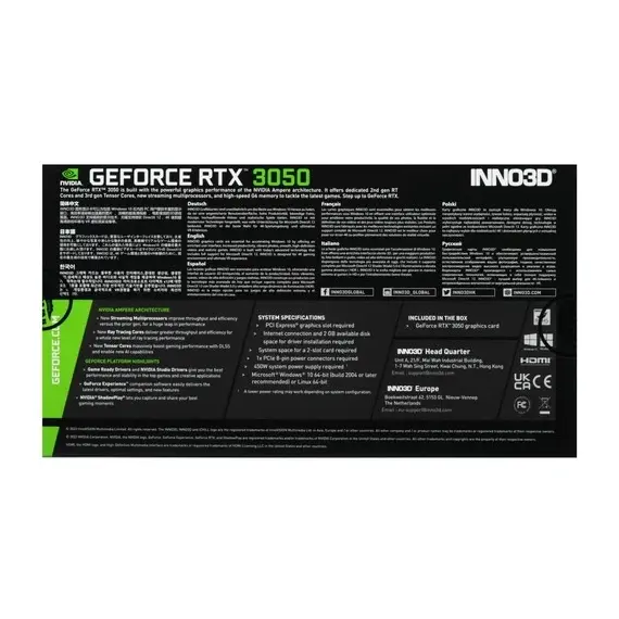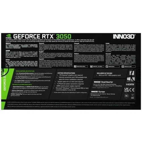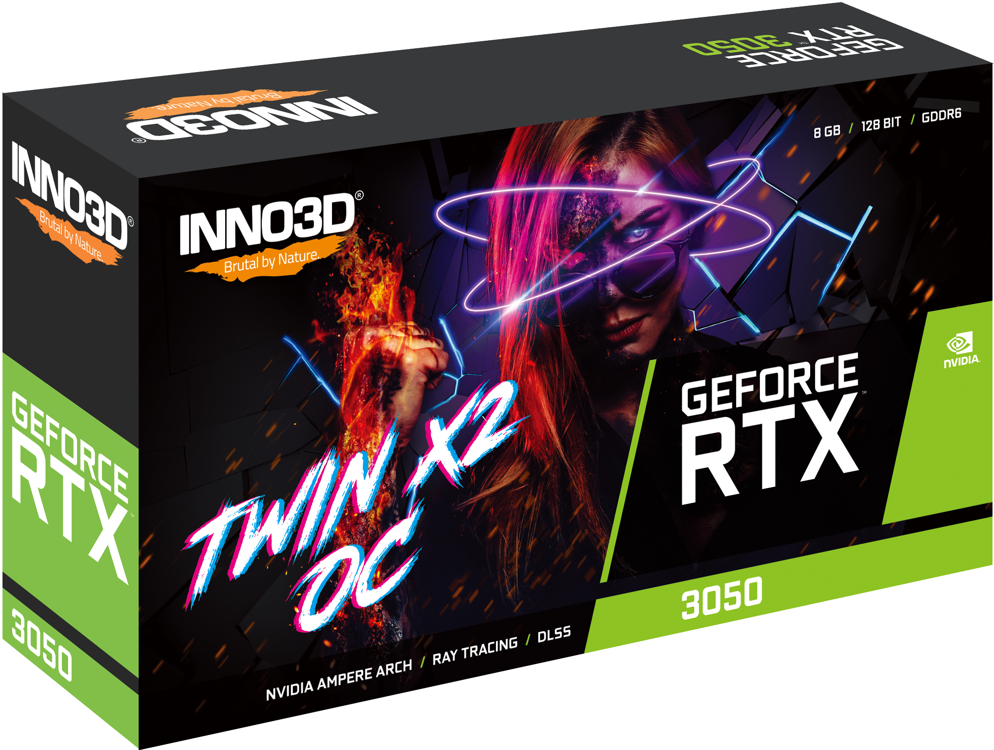 Видеокарта INNO3D GeForce RTX 3050, 8 Гб, Twin X2 OC V2 GDDR6, 128 бит, 2FAN (N30502-08D6X-1711VA41)