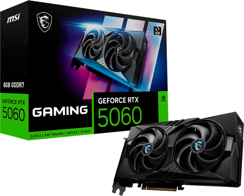 Видеокарта MSI GeForce RTX 5060, 8 Гб GDDR7, 128 бит, 2FAN (RTX 5060 8G GAMING)