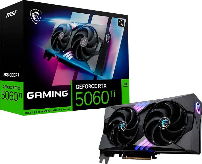 Видеокарта MSI GeForce RTX 5060 Ti, 8 Гб GDDR7, 128 бит, 2FAN (RTX 5060 Ti 8G GAMING)