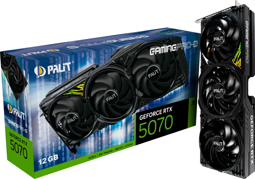 Видеокарта PALIT GeForce RTX 5070, 12 Гб, PA-RTX5070 GAMINGPRO-S GDDR7, 192 бит, 3FAN (NE75070019K9-GB2050U)