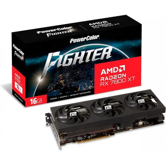 Видеокарта POWERCOLOR Radeon RX 7800 XT, 16 Гб, Fighter GDDR6, 256 бит, 3FAN (RX7800XT 16G-F/OC)