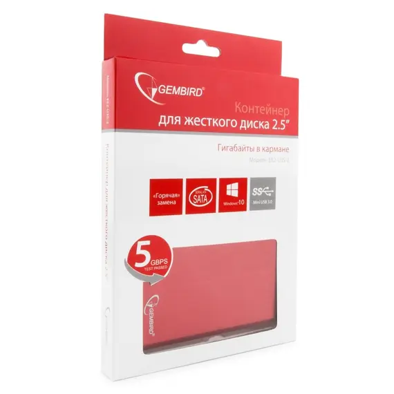 Внешний корпус для HDD/SSD GEMBIRD 2.5", SATA, USB 3.0, пластик, металл, красный (EE2-U3S-2-R)