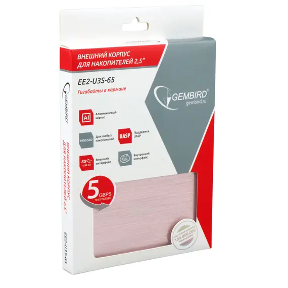 Внешний корпус для HDD/SSD GEMBIRD 2.5", SATA, USB 3.0, пластик, металл, розовое золото (EE2-U3S-65)