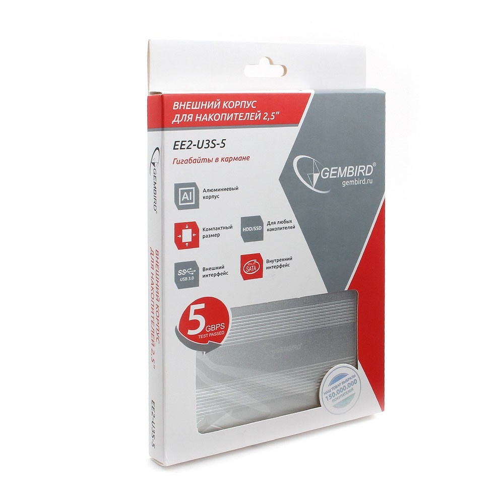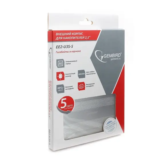 Внешний корпус для HDD/SSD GEMBIRD 2.5", SATA, USB 3.0, металл, серебристый (EE2-U3S-5-S)