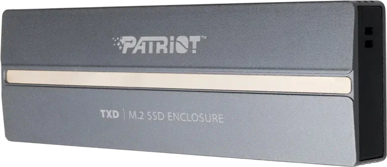 Внешний бокс TXD от Patriot рассчитан на SSD M.2 PCIe форм-факторов: 2230 / 2242 / 2260 / 2280, объёмом от 120GB до 8TB. Интерфейс Gen2 USB 3.2 позволяет передавать информацию со скоростью чтения/записи до 1000MB/s.
