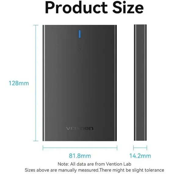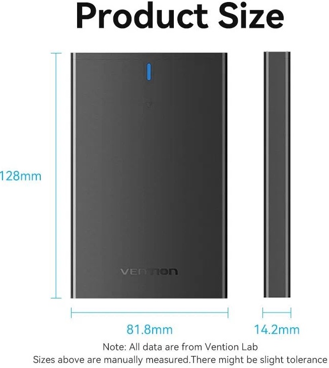 Внешний корпус для HDD/SSD VENTION 2.5", SATA, подключение USB 3.0, порт USB Mirco-B, пластик, чёрный (KPAB0)
