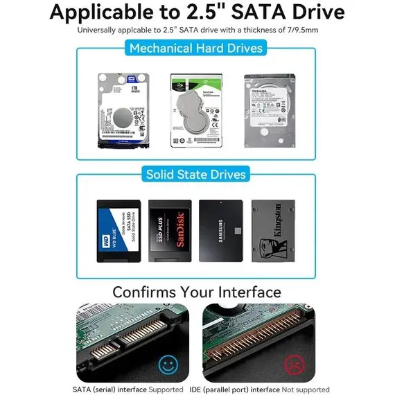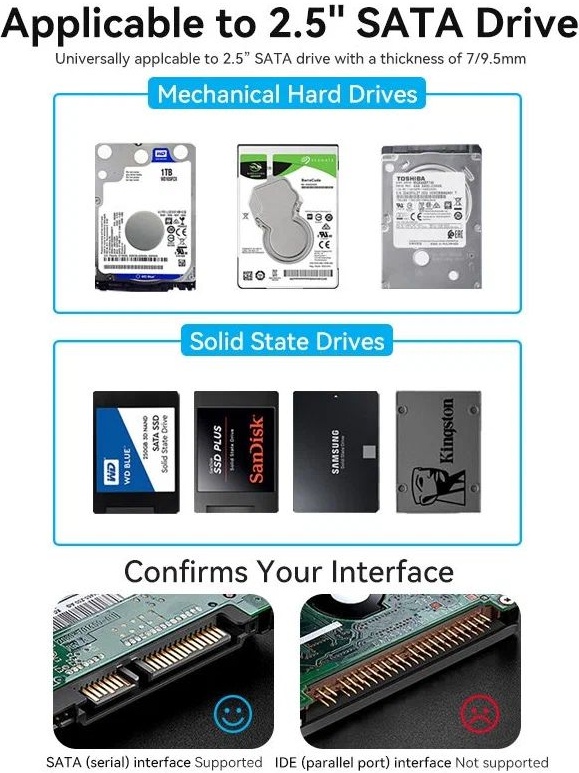 Внешний корпус предназначен для передачи данных между устройствами оборудованными разъемами SATA и USB 3.0 и более ранними версиями стандарта. Незаменим при подключении SSD 2,5" или HDD 2,5" накопителя к ноутбуку, компьютеру или прочему оборудованию. Совместим с ОС: MAC / 98SE / ME / VISTA / 2000 / XP / Windows Mobile 6 / Windows 98 / Win7/8. Внешний корпус поддерживает технологию Plug and Play, тем самым, не требуя установки дополнительного программного обеспечения и драйверов.