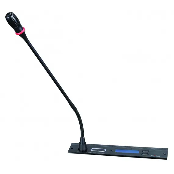 Врезной проводной микрофонный пульт делегата EG-6621D на "гусиной шее" черного или серебристого цвета. Длина микрофона «гусиная шея» 420 мм. Совместим с блоком управления EG-6620M. Получает питание от центрального блока. Микрофонный пульт оснащен кнопками регулировки уровня звука в наушниках.