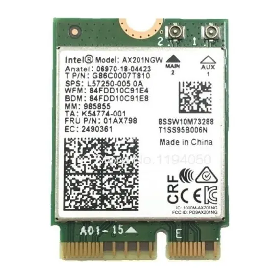 Wi-Fi адаптер INTEL + Bluetooth, Wi-Fi 6 AX201, 2230, 2x2 AX+BT, No vPro,999TD0 (M.2: CNVio2) (AX201.NGWG.NVW)