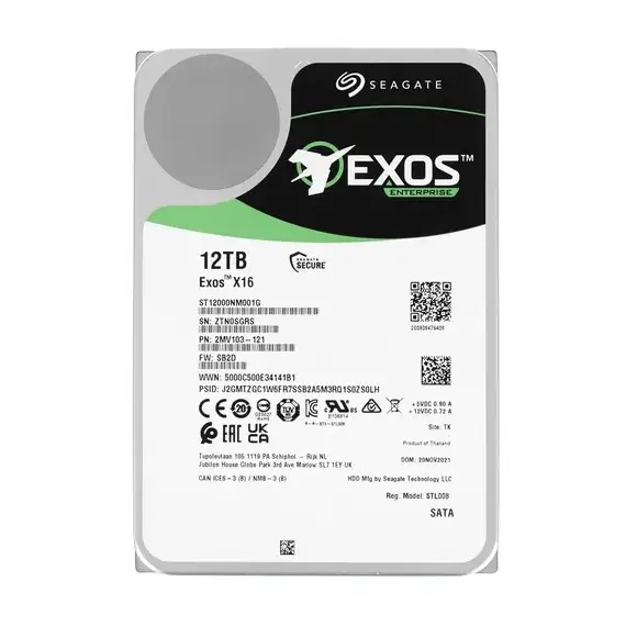Жесткий диск SEAGATE 12 Тб, 3.5", Exos X16 SATA-III, 7200 об/мин, кэш 256 Мб (ST12000NM001G)