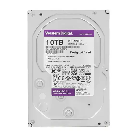 Жесткий диск WD 10 Тб, SATA-III, 7200 об/мин, кэш 256 Мб, 3.5", Western Digital Purple Pro (WD101PURP)