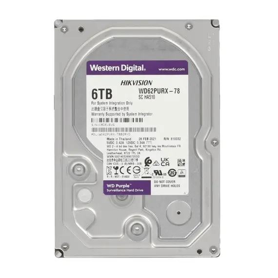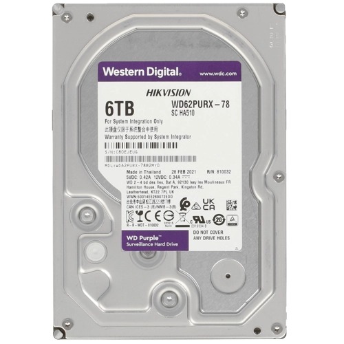 Жесткий диск WD 6 Тб, 3.5", Western Digital Purple SATA-III, 5640 об/мин, кэш 128 Мб (WD62PURX)