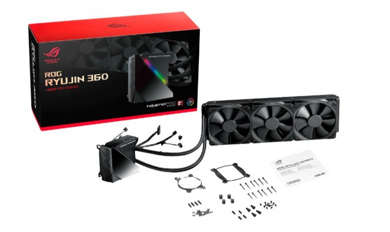 Жидкостная система охлаждения ASUS для процессора, Socket 115x/1200, 1356, 1366, 2011, 2011-3, 2066, AM4, 3x120 мм, 450-2000 об/мин, разноцветная подсветка, ROG RYUJIN 360 (90RC0020-M0UAY0)