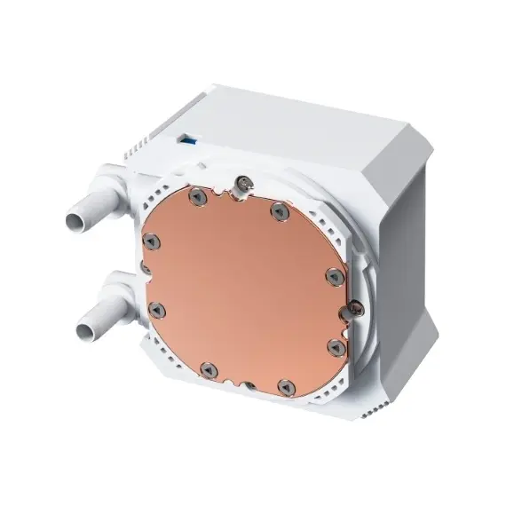 - Сборщики тематических белых ПК: Полностью белый дизайн радиатора, помпы и вентиляторов с адресной RGB-подсветкой делает её центральным элементом build-а.