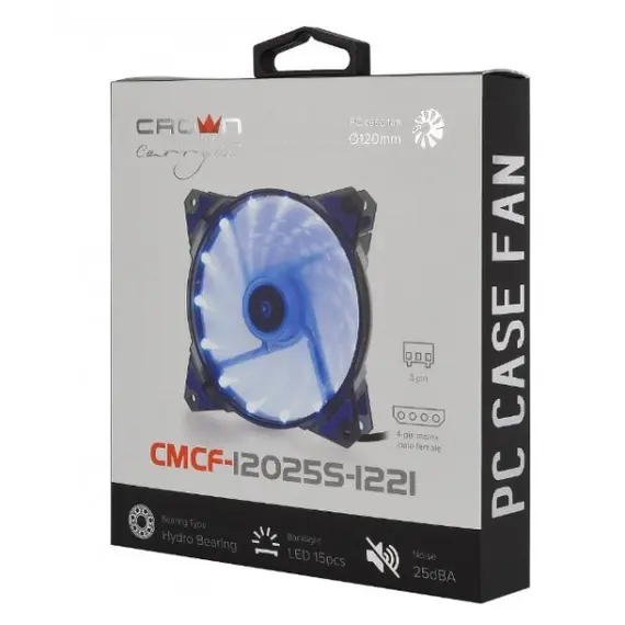 Вентилятор для корпуса CROWN 120 мм, 1650 об/мин, 28 дБ, цвет подсветки: синий, CMCF-12025S-1221 (CM000002224)