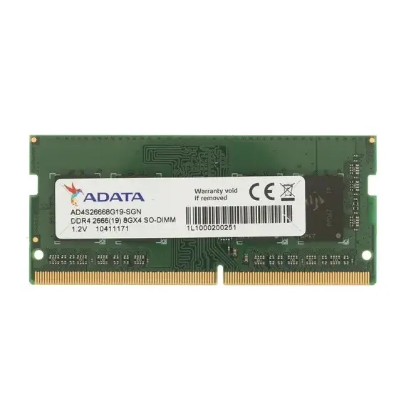 Память ADATA 8 Гб, DDR4, 21300 Мб/с, CL19, 1.2 В,2666MHz, SO-DIMM (AD4S26668G19-BGN)